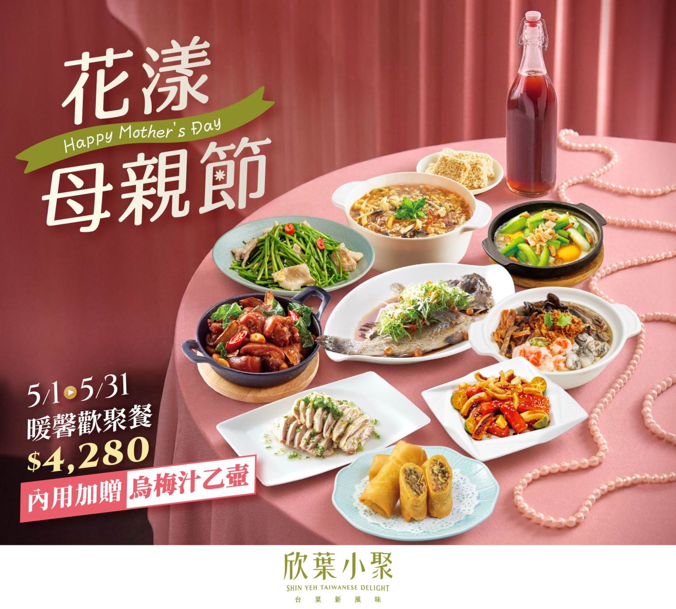 【花漾母親月】5/1-5/31暖馨歡聚餐內用外帶享好康