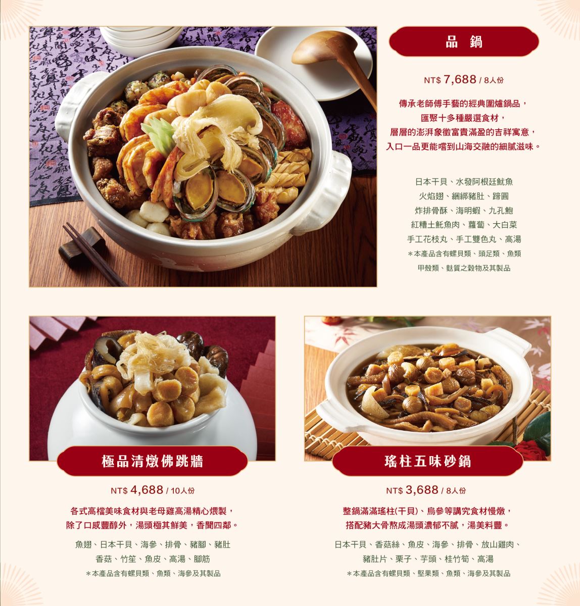 不僅有七滿福年菜、台式單品鍋物外