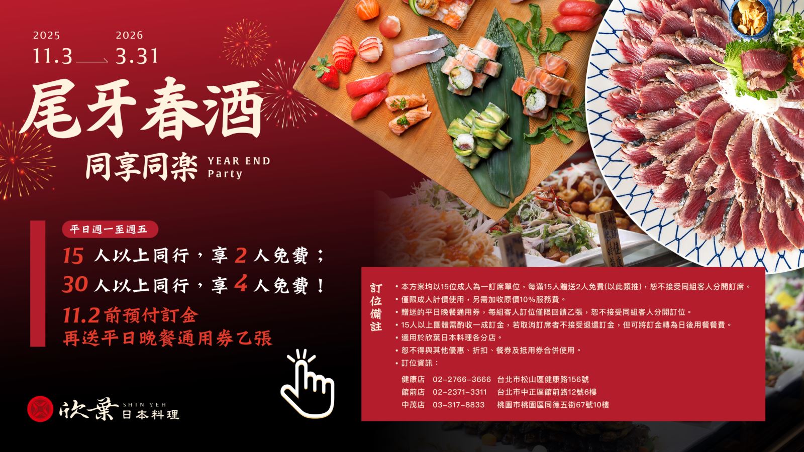 【2025-2026尾牙春酒】歲末齊聚 欣葉陪你嗨翻天