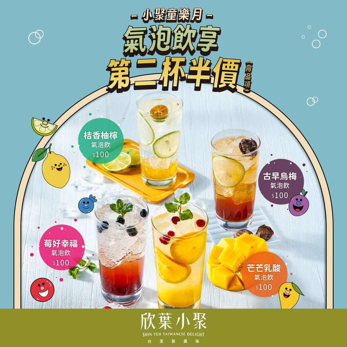 【欣葉小聚童樂月】氣泡飲享第二杯半價