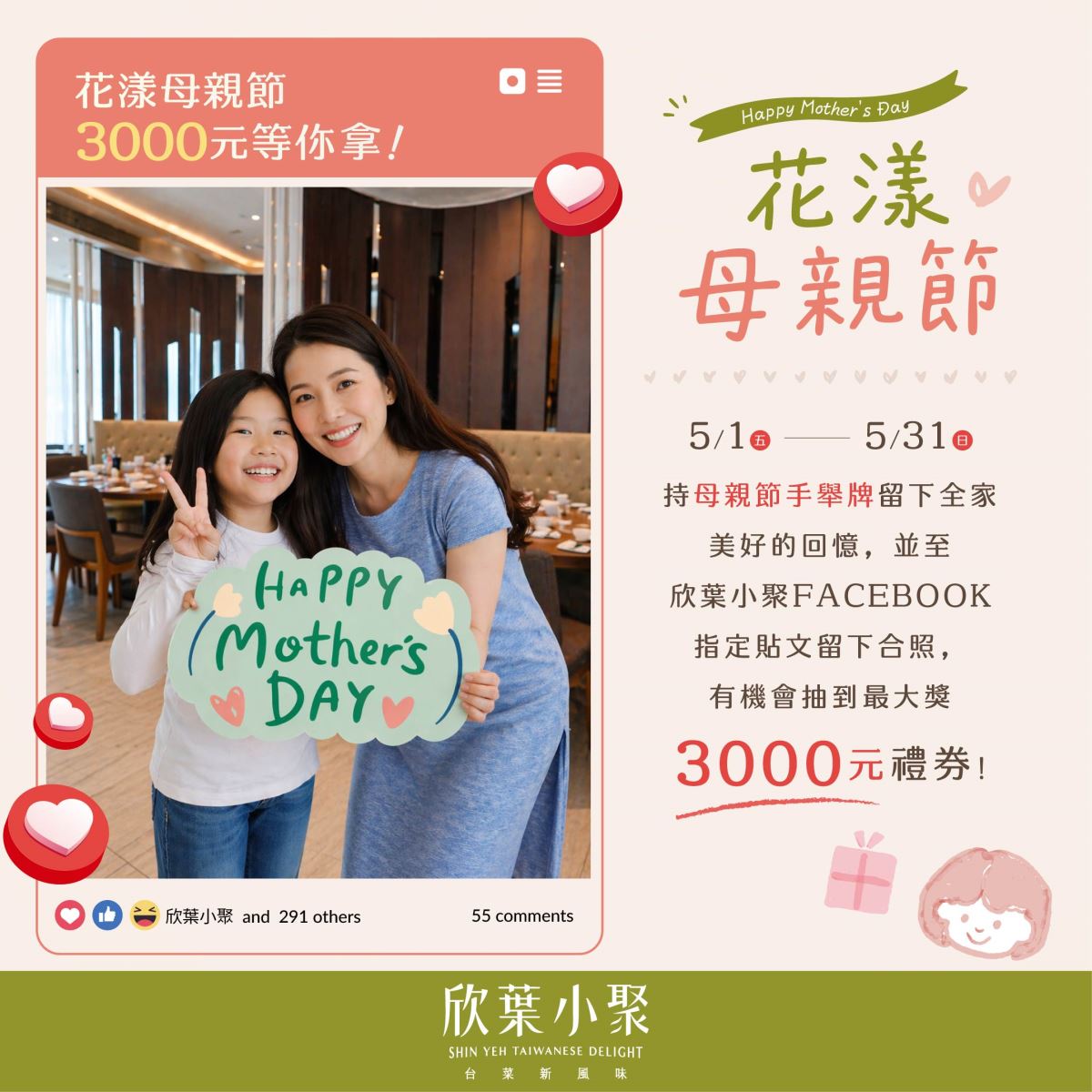 只要在欣葉小聚FB粉絲團指定貼文留上合照